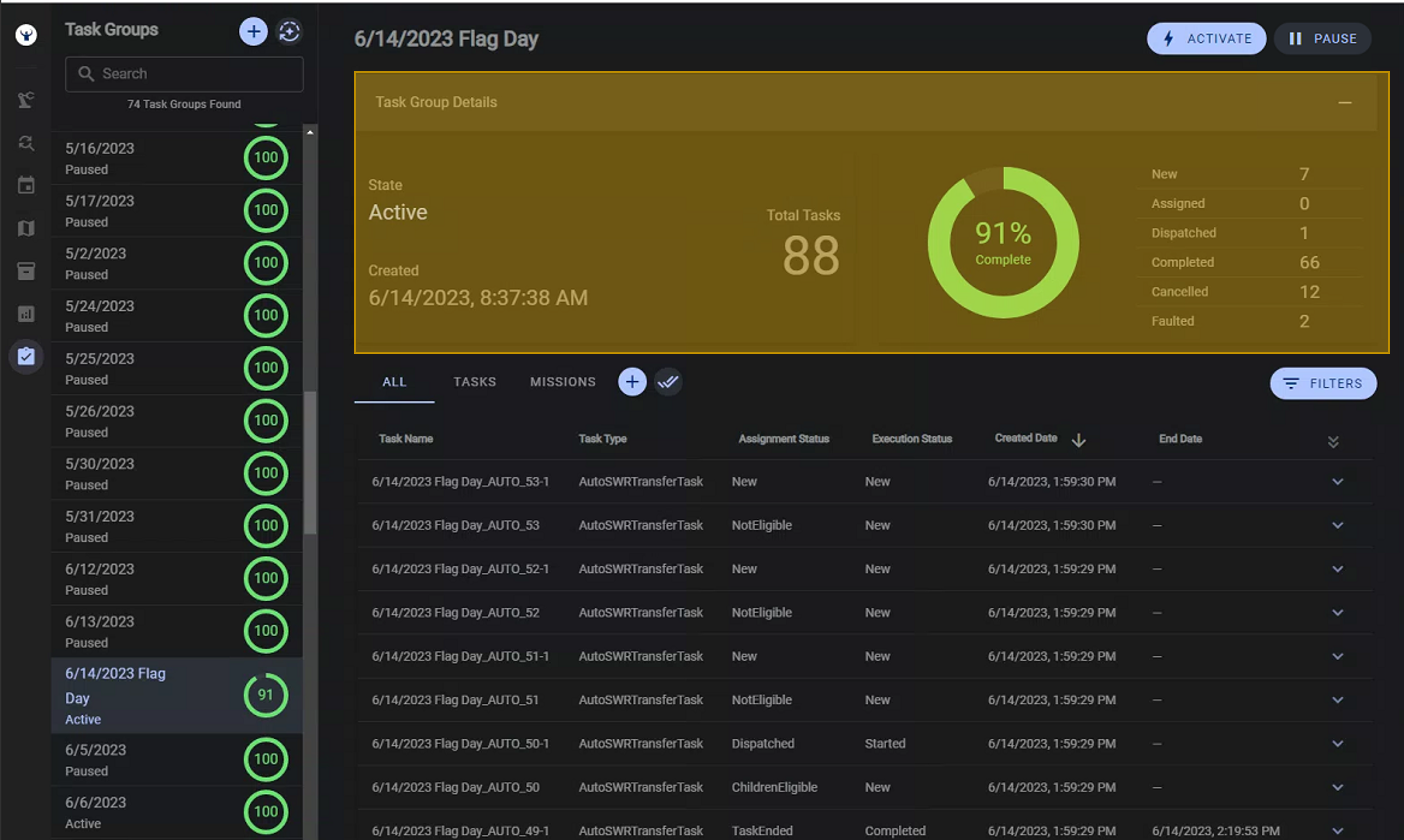 By selecting the Task Group and expanding the Task Group Details Section, you can also view the detailed view