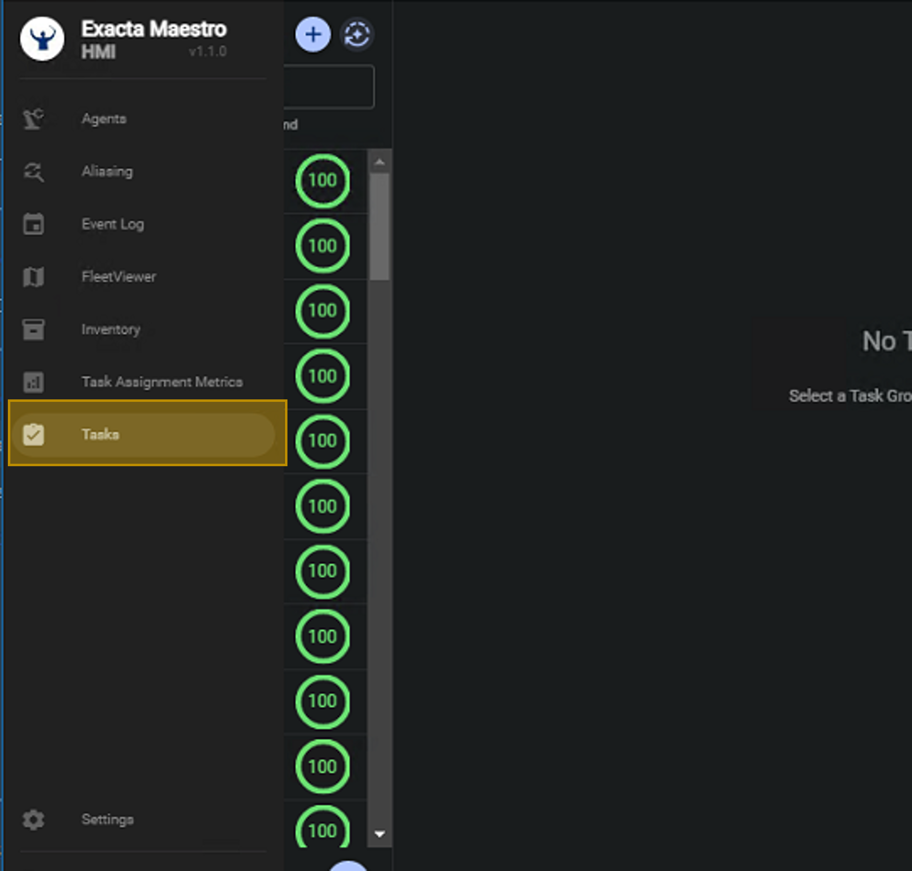 In the main menu side panel, select "Tasks" from the list to navigate to the tasks page
